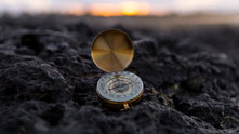 Kompass vor Landschaft in Island. Bild von Gerrett Sears auf Unsplash.